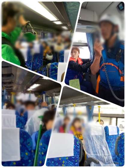着替えが終わったら再びバスに乗り、昼食会場へ移動します。