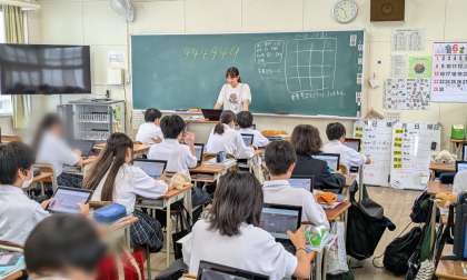 (画像は、1年生社会、2年生の休み時間の様子です)