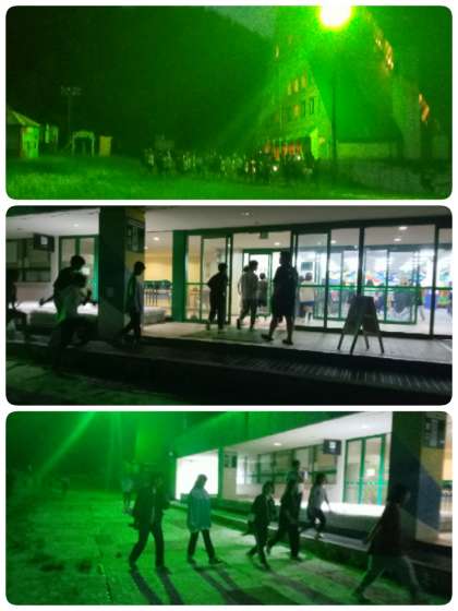 ホテル裏側から、センターハウス3階「ロッキー」前に集合し、準備ができるのを待って入館しました。