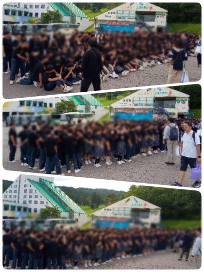 退所式を終え、最後、ホテルをバックに全員写真を撮影しました。