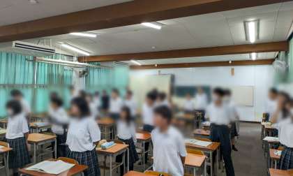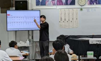 本日2時間め、大阪市総合教育センターよりスクールアドバイザーの方が来校され、1年4組で音楽科の研究授業が行われました。