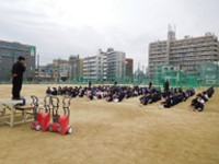本日4時間目、期末テストを終えた後に、50周年記念事業の一環である航空写真を撮影いたしました。