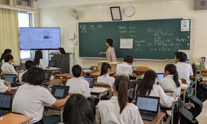 (画像は、3年生理科、2年生数学、1年生美術の様子です)