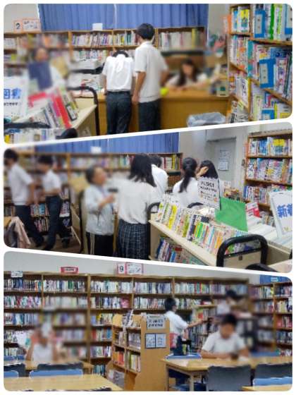 暑さもあってか、図書室にはたくさんの生徒が読書や本を借りに来室していました。