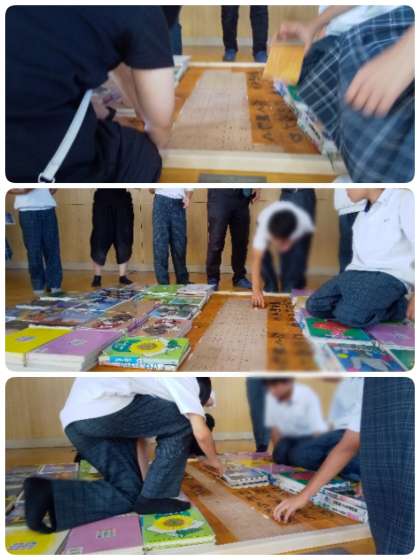 この時間はひとり3枚ずつ、決められた位置に指定の小板を貼り付けました。