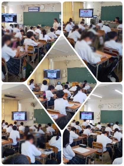 本日1時間目、1年生各教室にてNTT ドコモの方による「スマホ教室」を行いました。