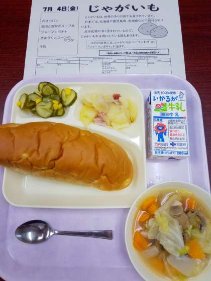 今日の献立には、パンにもおかずにも「イモ類」が入っていますね。