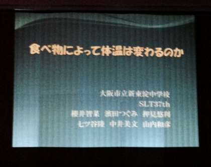 次に紹介するのは、3年生有志(SLT37th)による科学理科研究発表「食べ物によって体温は変化するのか」の様子です。