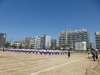 向けて、学年練習が始まりました。写真は3年生の開会式の
