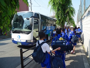 生徒たちは、格技室で「出発式」を行った後、9時15分に元気に出発しました。「一泊移住」は、5月21日(土)〜22日(日)に和歌山県日高郡にある「堺市立日高少年自然の家」で行われます。自然の中での活動を通じて、学級や班の中で協力して活動することにより、より良い仲間づくりをして欲しいと思っています。