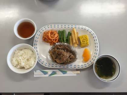 午後から予定も無事に終わり、夕食(メニュー:豚のしょうが焼き)の時間です。