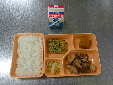 煮もの、キャベツの甘酢あえ、米飯、牛乳