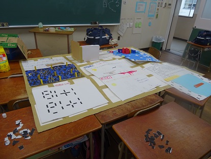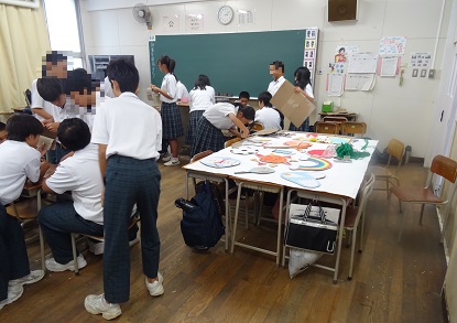 1年生の展示準備も急ピッチで進められています。テーマは、担任の先生が担当している教科でクイズを作製して展示をします。