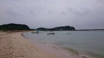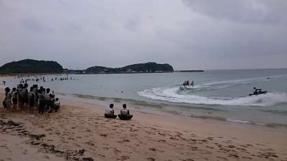 午後からのマリンスポーツの取り組みを紹介します。6種類のマリンスポーツを各クラスが順番で体験します。