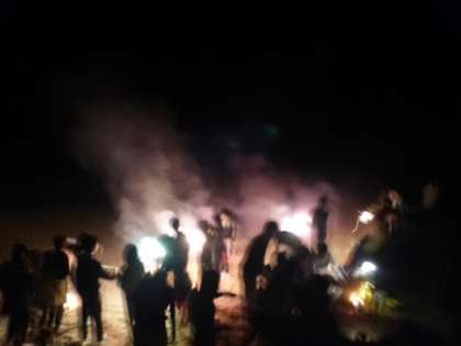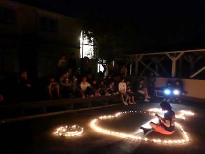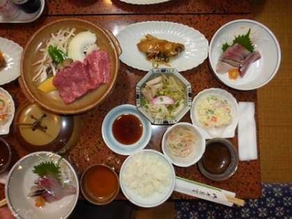 写真上・中段は2日目夜に行った花火の様子です。下段は夕食です。
