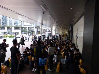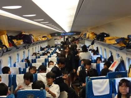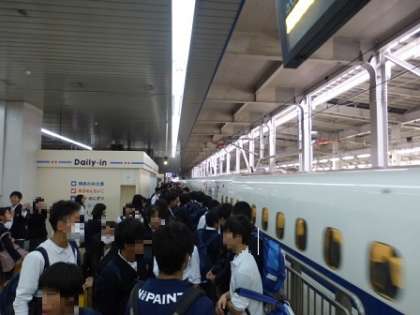 生徒たちは、15時12分に大阪に向けて『博多駅』を出発しました。(のぞみ180号に乗車)新大阪駅到着予定時刻は「17時54分」です。到着後、新大阪駅1階正面口にて解散式を行い、終了後、自宅に向かいます。