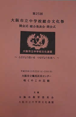 10月22日(土)・23日(日)に、「第25回 大阪市立中学校総合文化祭」が大阪市立鶴見区民センター、咲くやこの花館で開催されました。