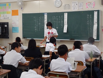 本日の6時間目に全学級で「大阪市大会 道徳プレ公開授業」を実施しました。本校では、学年ごとに生徒の状況に応じて、主題(1年:生きる喜び・2年:働く意義・3年:くじけない心)と内容項目(1年:生命の尊さ・2年:勤労の尊さと社会貢献・3年:希望と勇気、克己と強い意志)や、ねらいなどを設定し、副読本を資料として活用し、読みを通して、生徒が自分の考えを広げ、自身の気づきを深めていけるように授業担当者が工夫を凝らして授業を展開しました。