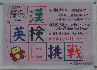 校下小学生、本校生徒及び保護者の26名が受検しました。それぞれが申込んだ級の合格を目指して、日頃の成果を十分に発揮してくれたことだと思います。