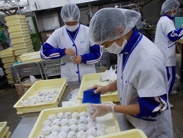 上段:「ファミリーレストラン」でパンを作っている様子です。