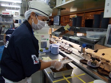 下段:「お寿司屋さん」でお寿司を作っている様子です。