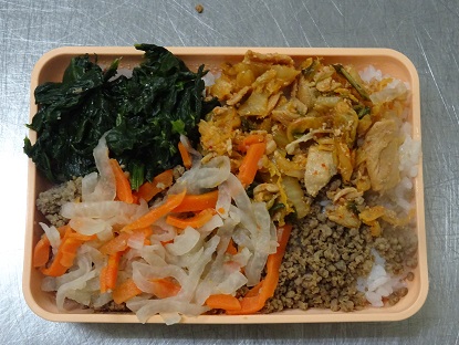 本日のメニュー:ビビンバ(肉炒め・ほうれん草・ナムル・豚キム
