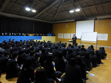 本日6限に、3年1〜3組の生徒を対象に薬物乱用防止教室を格技室で行いました。