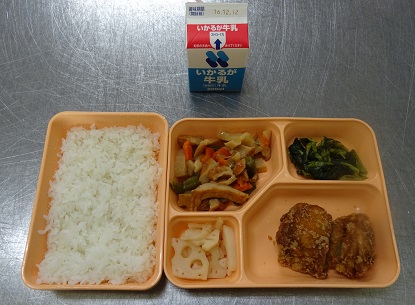 のおひたし、れんこんの酢のもの、米飯、牛乳