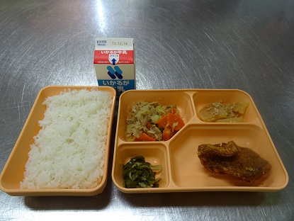 本日のメニュー:赤魚の竜田揚げ、豚肉と野菜の煮もの、だいこんの
