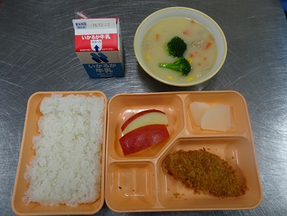 本日のメニュー:クリームシチュー・ブロッコリー、サーモン