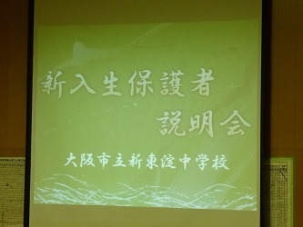 説明会では、 「学校長あいさつ」、「本校の教育方針」、「入学式等」、「特別支援教育」、「中学校の学習内容」、「中学校生活」、「学用品などの物品購入」、「中学校給食」、「学校諸費の納入方法」などについて説明を行いました。また、PTA会長から、「PTA活動」についての紹介がありました。
