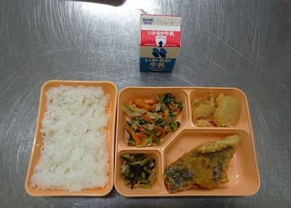 本日のメニュー:白身魚のから揚げおろしポン酢かけ、豚肉と野菜の