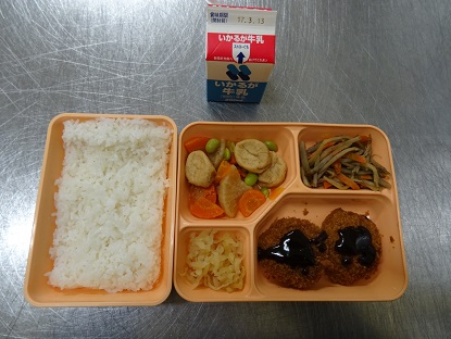 本日のメニュー:一口ヒレとんかつ、一口がんもとだいこんのみそ煮、