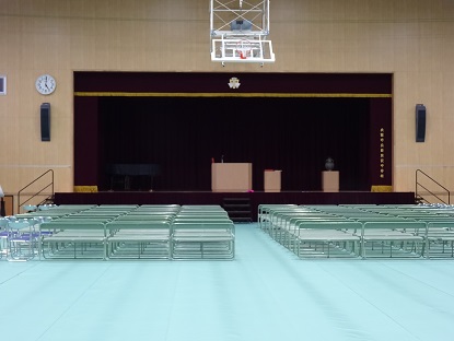 この間、3年生保護者のみなさまにはご心配をおかけしましたが、ピカピカの体育館で3月14日(火)に「第40回 卒業証書授与式」を挙行いたします。