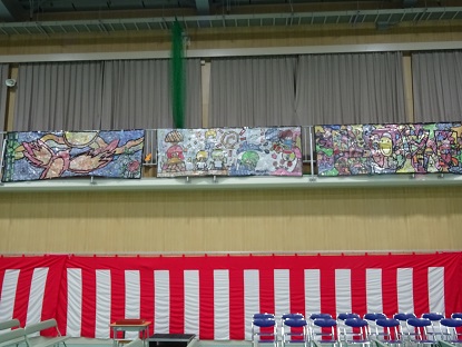 写真は卒業生が1年生の文化発表会時にペットボトルのラベルを用いて作成したステンドグラスを卒業式の会場に展示しました。