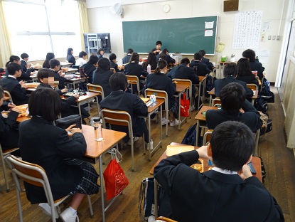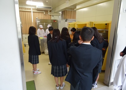 写真上段:配膳室で受け取る様子です。中段:1年生の教室での様子