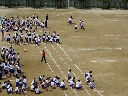 3年生は28日(日)から、修学旅行を控えていますが、本日1・2限目に6月9日(金)に開催される「体育大会」に向けて学年練習を開始しました。
