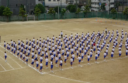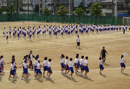 5・6限目は、1年生の学年練習です。1年生は中学校では初めての体育大会となります。今日の学年練習では入場行進とラジオ体操の練習を行いました。最初は中々まとまりが感じられませんでしたが、行進の練習を繰り返す間に、2年生に負けず元気よく「1・2、1・2(イチニ、イチニ)」と大きな掛け声が響いていました。