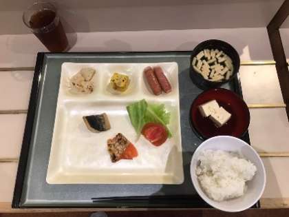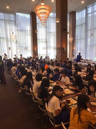 今朝は快晴で、絶好の修学旅行日和です。写真は朝食の様子です。