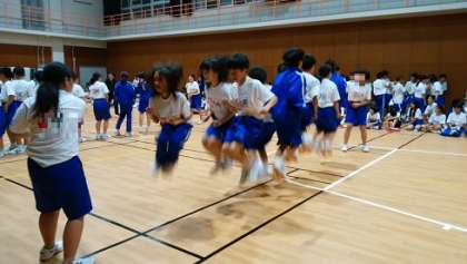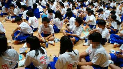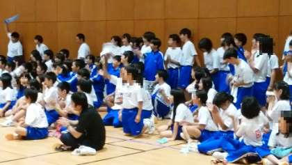 写真は一泊移住では恒例の「室内オリンピック」の様子です。クラス対抗ですので、来月に行われる「体育大会」の前哨戦として、生徒たちは張り切って取り組んでいました。終了後には補食を摂りました。