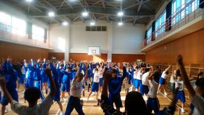 「和歌山 日高」の現地は快晴で、絶好の一泊移住日和となりました。写真は、「朝の集い」の様子です。