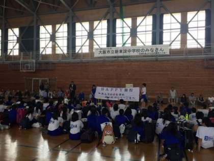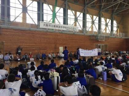 信濃町体育館での対面式の様子です。生徒たちは、このあと、各家庭で農山村生活体験を行います。