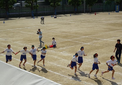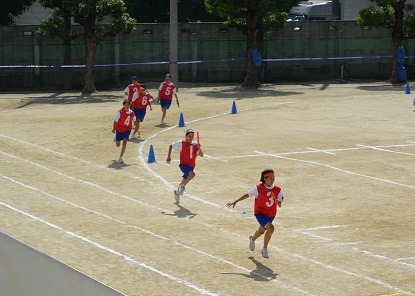 写真上段:スウェーデンリレー、中・下段:4×100mリレーの様子です。