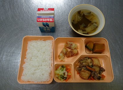 煮もの、即席漬、すまし汁、米飯、牛乳