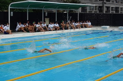出場した生徒たちは、クラスメイトからたくさんの応援を受けて、学年優勝を目指して精一杯泳いでくれました。