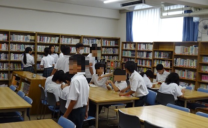今日はグランド不良で使用できなかったこともあり、昼休みには50名を超える生徒が図書室を訪れました。図書室では、それぞれがお気に入りの本を読み、午後の授業に向けて、自分流の方法で気分転換を図っていました。