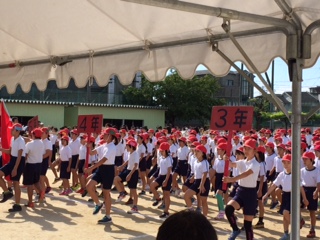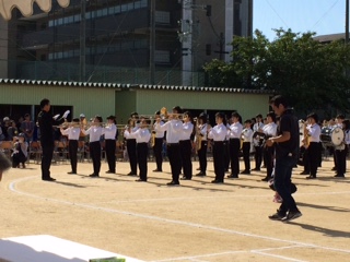 菅原小学校の運動会開会式の演奏を、吹奏楽部が協力しました。