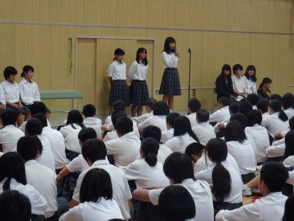 各候補からは、生徒会が中心になって「楽しい学校にしたい」「学校行事を盛り上げたい」「より良い学校にしたい」「明るく団結力のある学校にしたい」など、自分の抱負・考えを力強くアピールをしてくれました。
