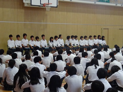本日6限目に、体育館で「生徒会役員演説会」、各教室で「投票」が行われました。定員は、会長1名、副会長1名、執行委員は4名です。なお、今回の生徒会役員選挙は6名の定員に対して、6名の立候補ですので信任投票となります。放課後に開票が行われ、後期の生徒会役員が決定します。