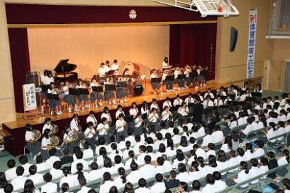 吹奏楽部(Brass!!)が舞台発表の様子です。50名を超える部員が一生懸命に演奏してくれました。ライブでの吹奏楽は迫力満点でした。